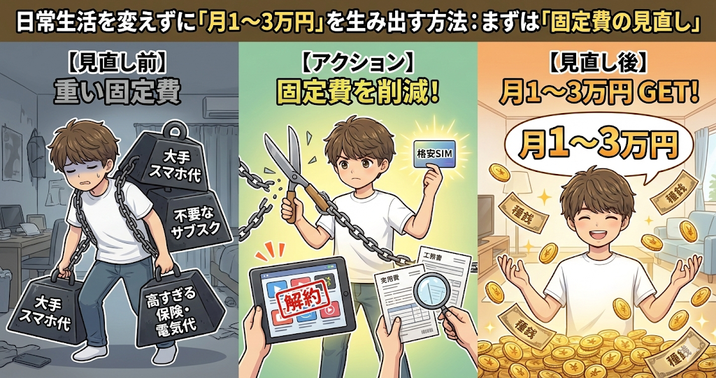 <日常生活を変えずに「月1〜3万円」を生み出す方法>