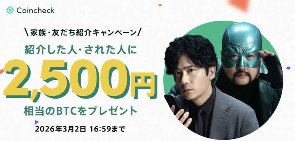 \今なら2500円相当のビットコインがもらえるキャンペーン中/